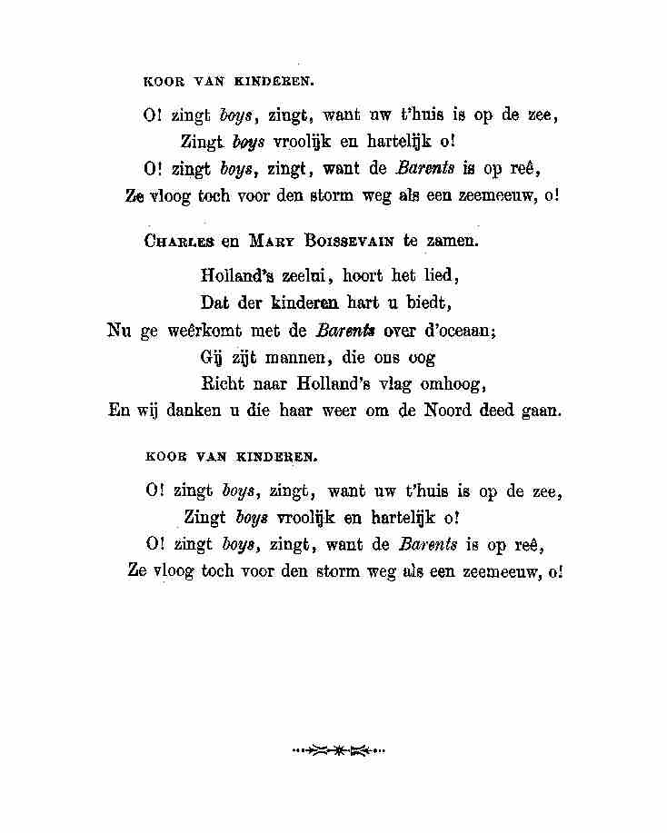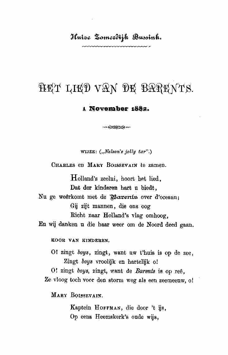 Het Lied van de Barents Gezongen door Charles en Mery Boissevain 1 november 1882 - Huize Zomerdijk Bussink |