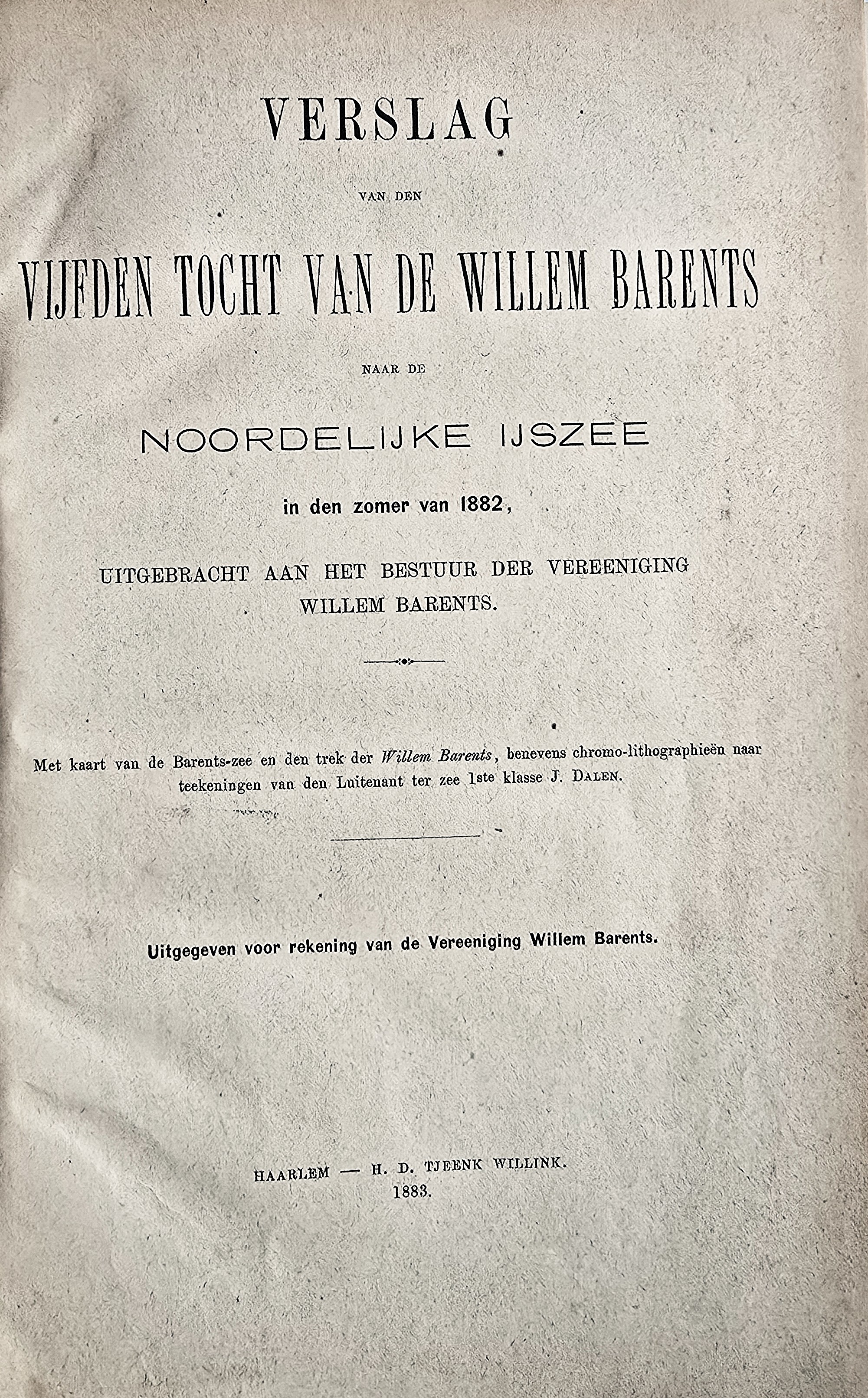 Verslag van den Vijfden tocht van de Willem Barents naar de Noordelijke IJszee in den zomer van 1882